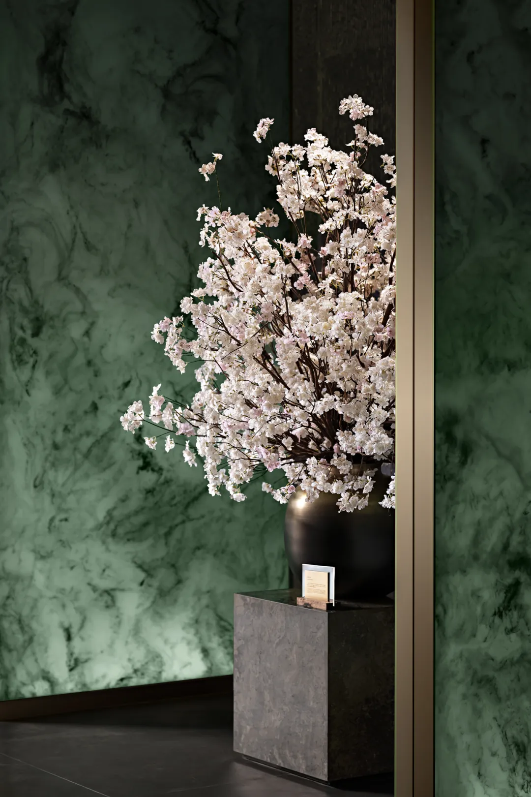 以杭州西湖的詩意山水與傳統水墨丹青為設計靈感,湖頌丹青府售樓空間將江南文人的審美意趣融入當代空間語言。墨色渲染與留白意境交織,光影如水般在空間中流淌,營造出一幅可遊可居的立體山水畫卷,讓訪客於方寸之間感受杭州獨有的詩畫韻味。