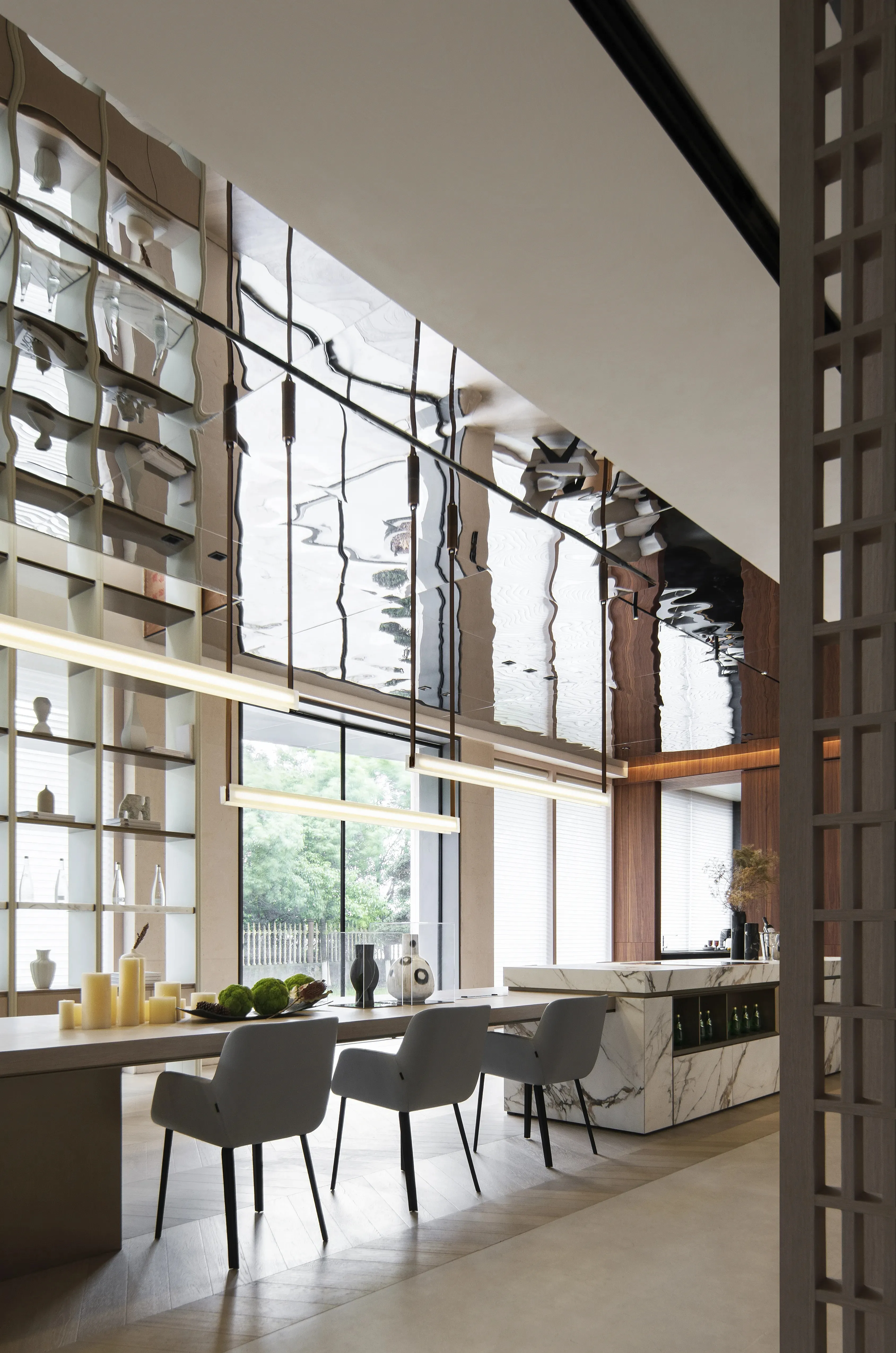 以晨霧為設計靈感,為美羅堡打造的全屋定制品牌展廳。空間運用柔和的光影層次與細膩的材質搭配,營造出如薄霧瀰漫般的詩意氛圍,將品牌的輕奢定制理念融入每一處空間細節,讓來訪者沉浸式感受高端定制家居的精緻生活美學。