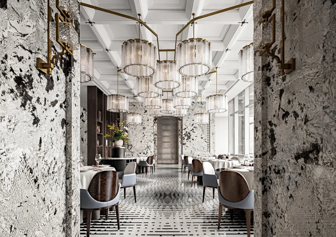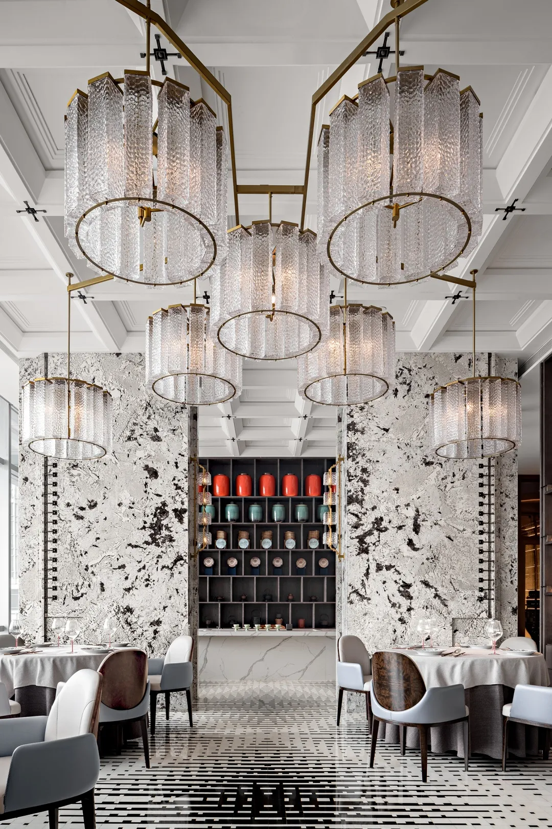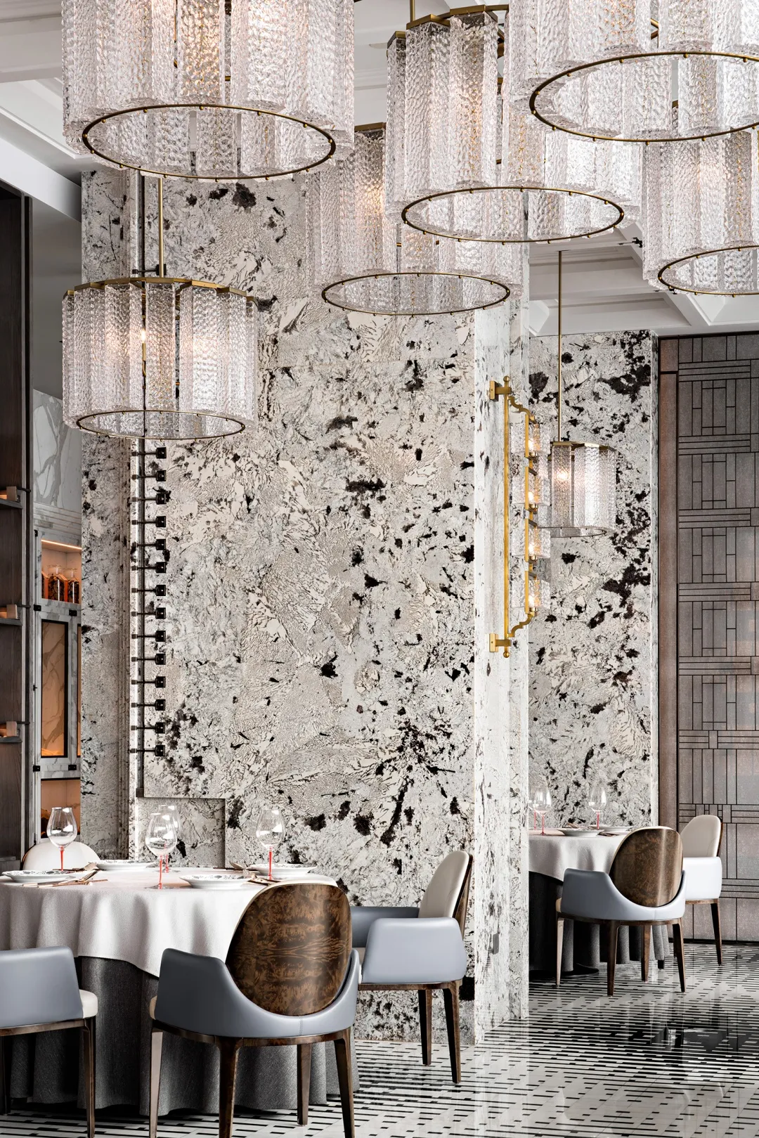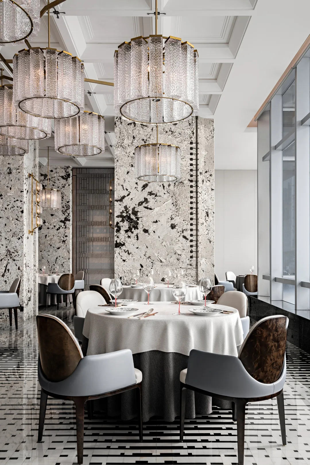 位於上海北外灘來福士的甬府餐廳,以寧波菜系的深厚底蘊為靈魂,融合海派都會的摩登氣質。設計在傳統與現代之間尋求平衡,精選天然石材與溫潤木質,輔以考究的燈光布局,打造出既承載甬幫菜文化記憶、又契合國際都會審美的高端用餐空間。