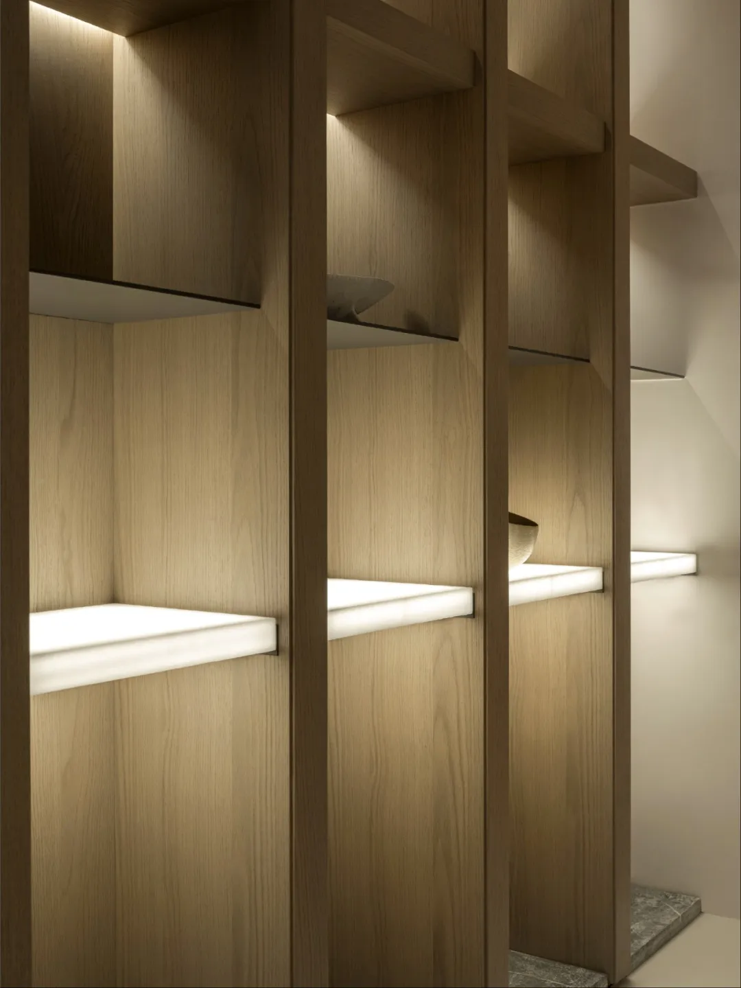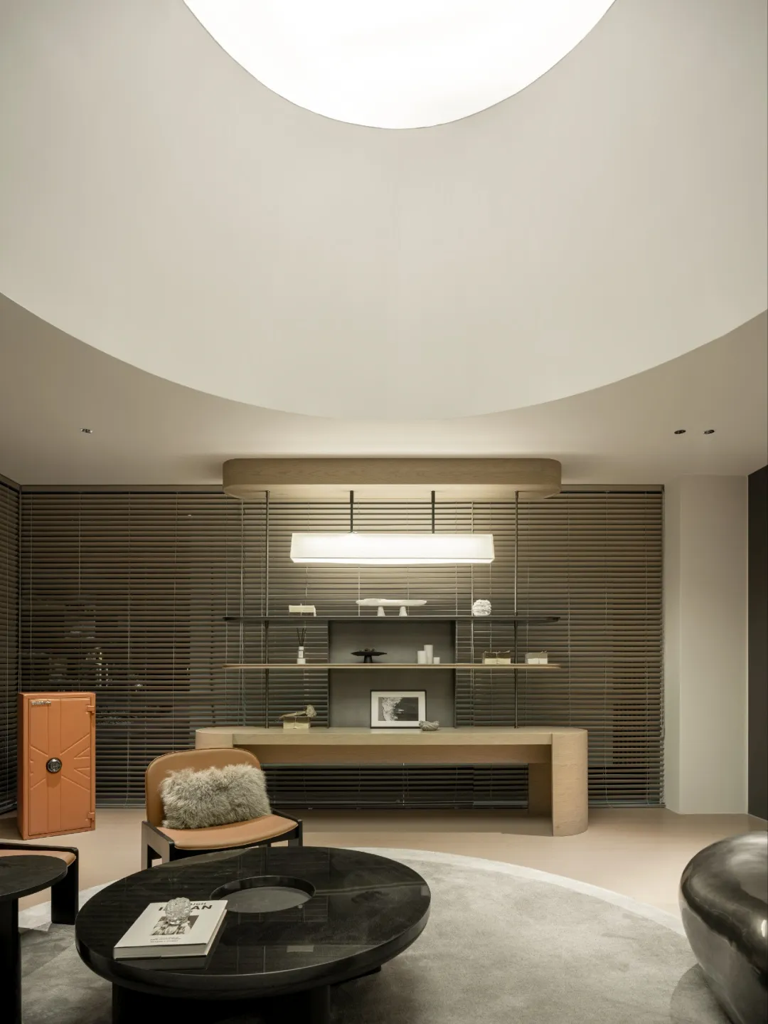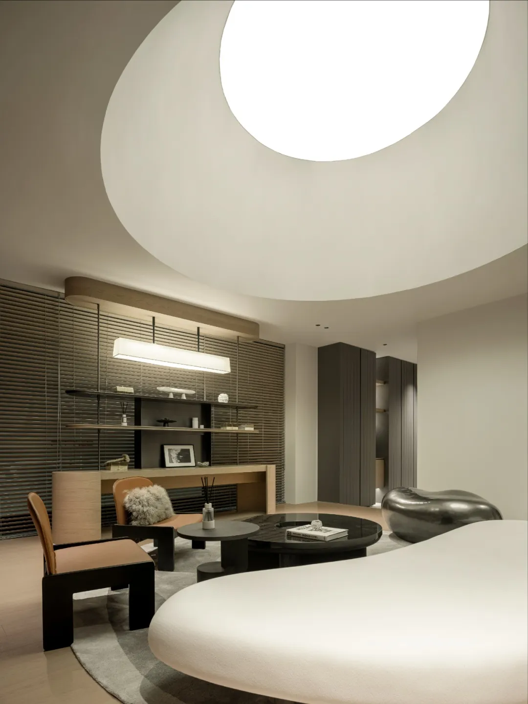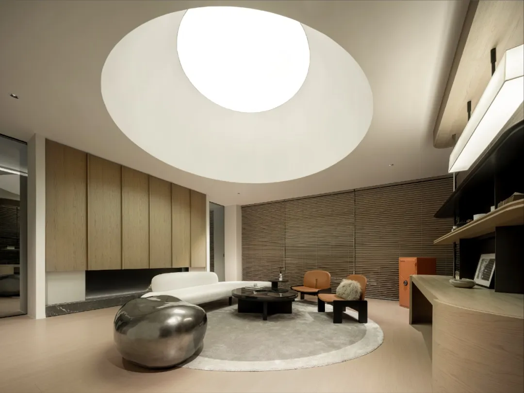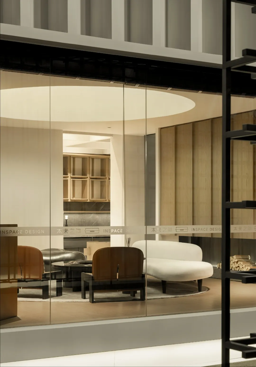 「本來之間」展廳以探索本源與蛻變之間的空間關係為核心理念,透過藝術化的空間敘事手法,將抽象的哲學概念轉化為可感知的沉浸式體驗。設計團隊以極簡的材質語言與光影交織,營造出介於虛實之間的概念場域,引導觀者在行走間感受空間的流動與靜謐,重新審視事物的本來面貌與無限可能。